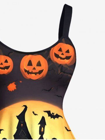 Halloween Dresses > Plus Size Halloween Pumpkin Moon Bat Castle Print Tank Dress