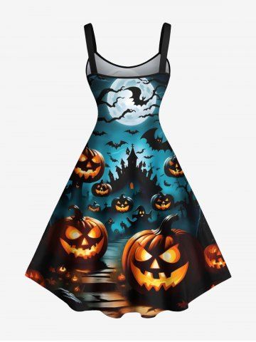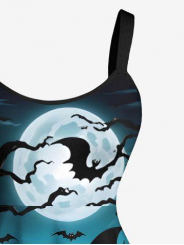 Plus Size Halloween Pumpkin Moon Bat Print Tank Dress - Black - 2x