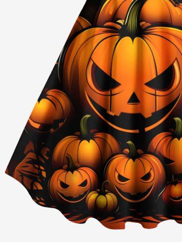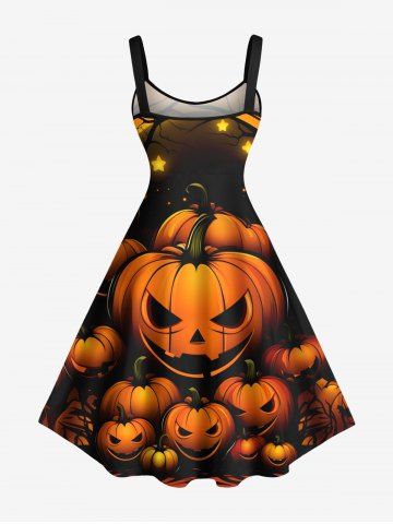 Plus Size Halloween Pumpkin Moon Stars Tree Print Tank Dress - Orange - 3x