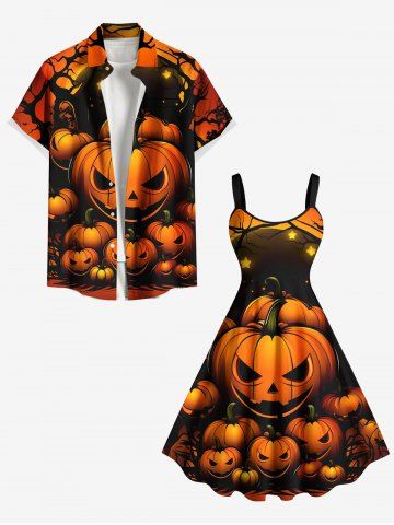 Halloween Dresses > Plus Size Halloween Pumpkin Moon Stars Tree Print Tank Dress