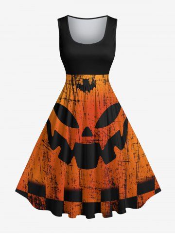 Halloween Dresses > Plus Size Halloween Pumpkin Plaid Checkered Print 1950s Vintage Dress
