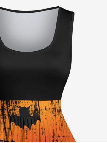 Plus Size Halloween Pumpkin Plaid Checkered Print 1950s Vintage Dress - Black - 2x