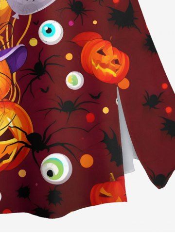 Plus Size Halloween Pumpkin Skull Balloon Eyes Bat Print Split Skirt - Deep Red - L
