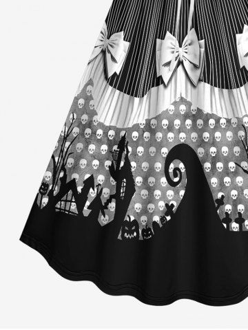 Plus Size Halloween Pumpkin Skull Cross Bowknot Print Cinched Dress - Black - 5x