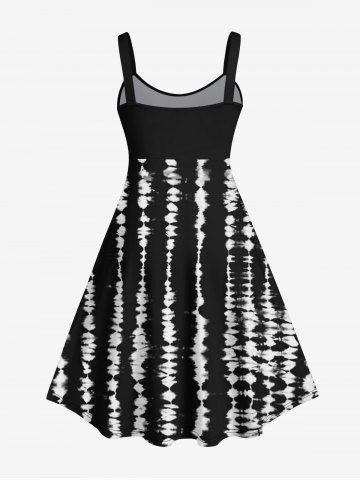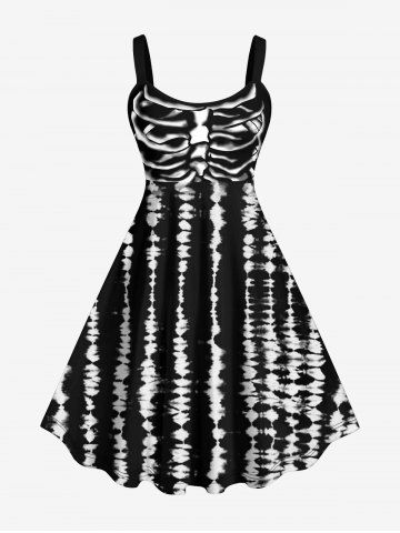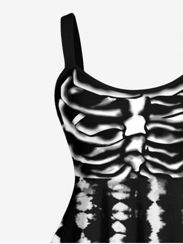 Plus Size Halloween Skeleton Tie Dye Print Tank Dress - Black - L