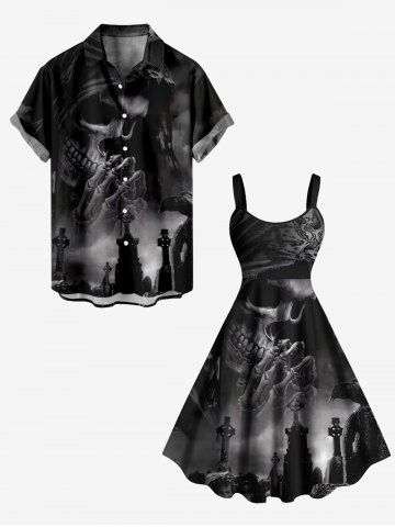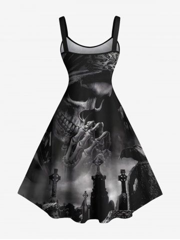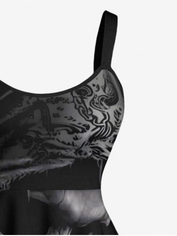 Plus Size Halloween Skull Cross Crow Print Tank Dress - Black - Xs