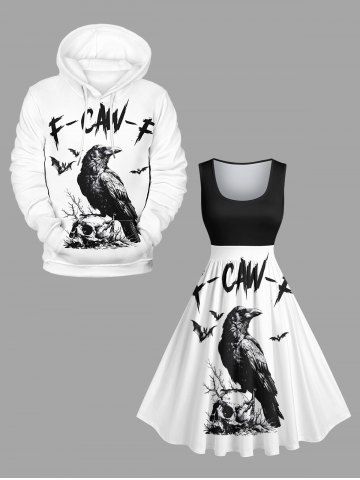 Halloween Skull Crow Bat Print Plus Size Matching Outfit For Couples