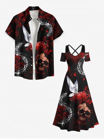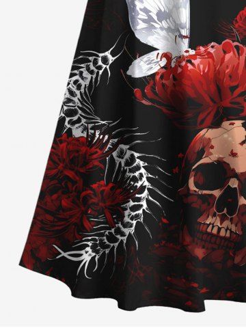 Halloween Dresses > Plus Size Halloween Skull Flowers Butterfly Centipede Print Cold Shoulder Crisscross Maxi Dress