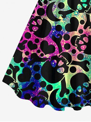 Plus Size Halloween Skull Heart Lip Glitter Print Tank Dress - Multi-a - Xs
