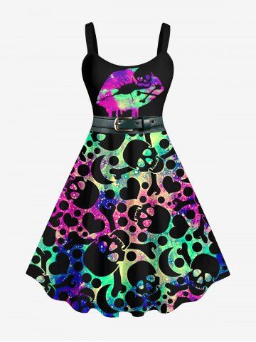 Plus Size Halloween Skull Heart Lip Glitter Print Tank Dress - Multi-a - 3x