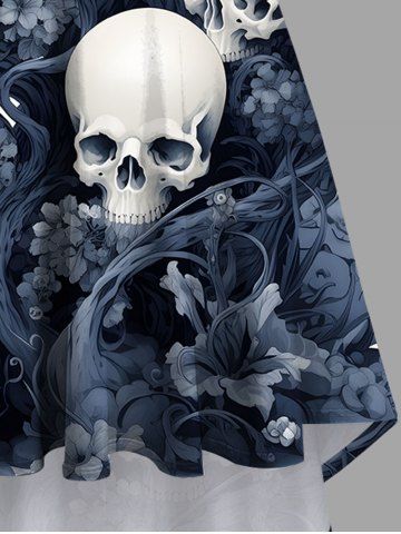 Plus Size Halloween Skull Octopus Flowers Print High Low Cami Dress - Navy Blue - M