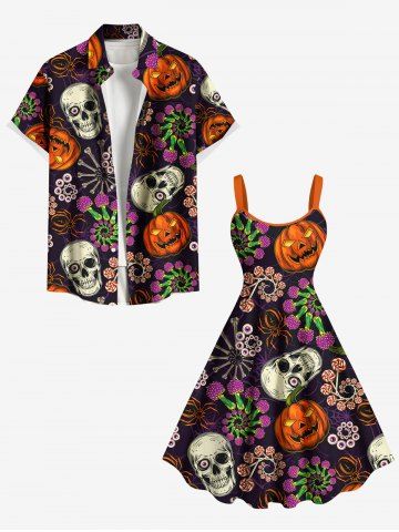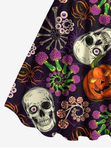 Halloween Dresses > Plus Size Halloween Skull Pumpkin Flowers Spider Print Tank Dress