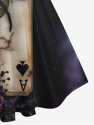 Halloween Dresses > Plus Size Halloween Skulls Flowers Spider Poker Print 1950s Vintage Dress