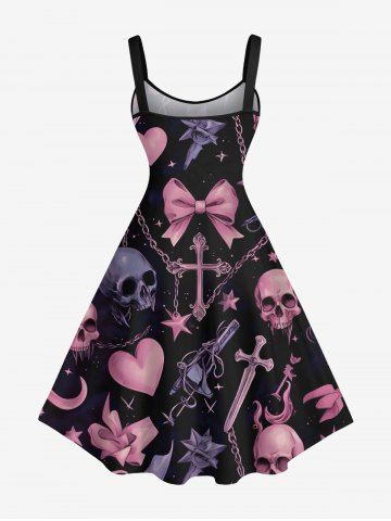 Halloween Dresses > Plus Size Halloween Skulls Heart Bowknot Star Chains Print Tank Dress