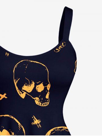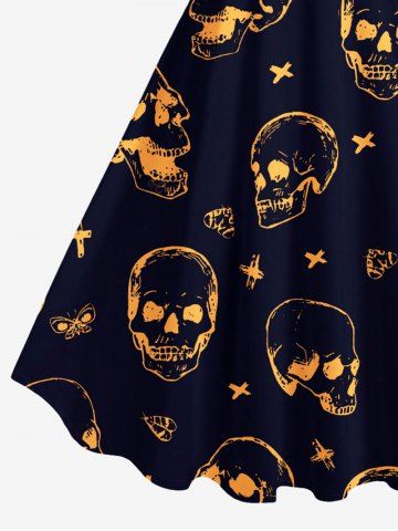 Plus Size Halloween Skulls Heart Butterfly Print Tank Dress - Black - 3x