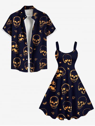 Halloween Dresses > Plus Size Halloween Skulls Heart Butterfly Print Tank Dress