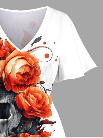 Plus Size Halloween Skulls Rose Flowers Print Split Midi Dress - White - L