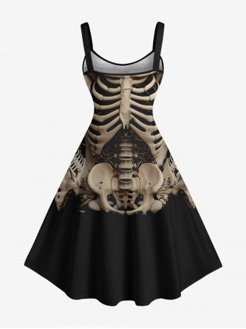 Halloween Dresses > Plus Size Halloween Skulls Skeleton Print Tank Dress
