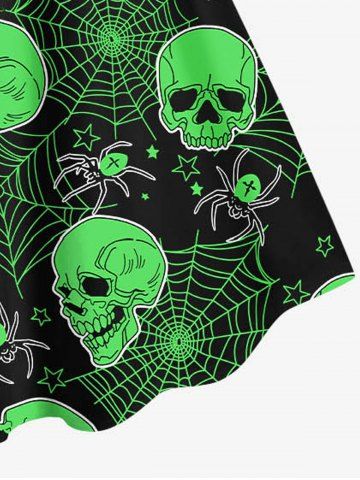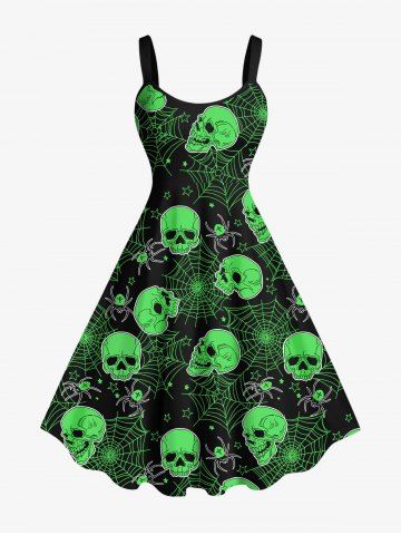 Plus Size Halloween Skulls Spider Web Star Print Tank Dress - Black - 4x