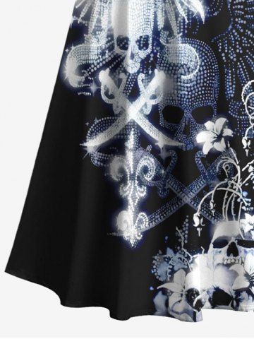 Plus Size Halloween Skulls Wings Flowers Print Cold Shoulder Crisscross Maxi Dress - Black - 1x
