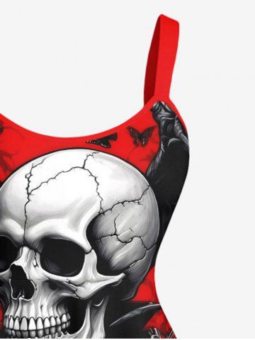 Halloween Dresses > Plus Size Halloween Skulls Wings Rose Flowers Butterfly Print Tank Dress