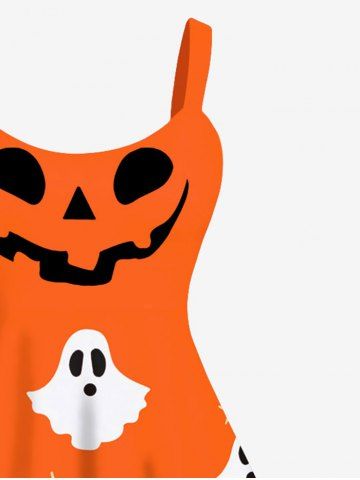 Plus Size Halloween Smile Ghost Star Print Tank Dress - Orange - 5x