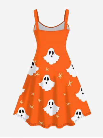 Plus Size Halloween Smile Ghost Star Print Tank Dress - Orange - 6x
