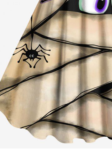 Plus Size Halloween Spider Eyes Letters Print Tank Dress - Apricot - 1x
