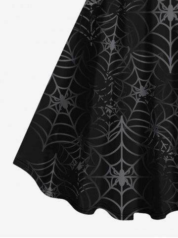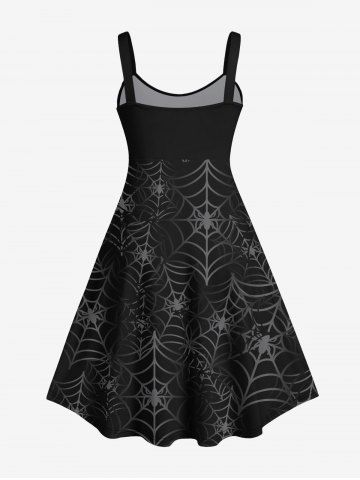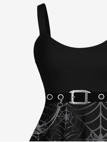 Plus Size Halloween Spider Web Grommets Buckle Chain 3d Print Tank Dress - Black - S