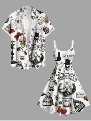 Plus Size Halloween Spider Web Skulls Butterfly Cat Maple Leaf Print Tank Dress - White - S
