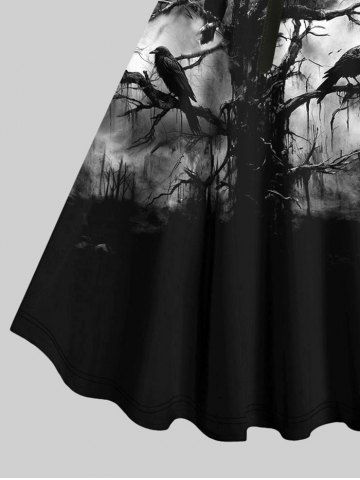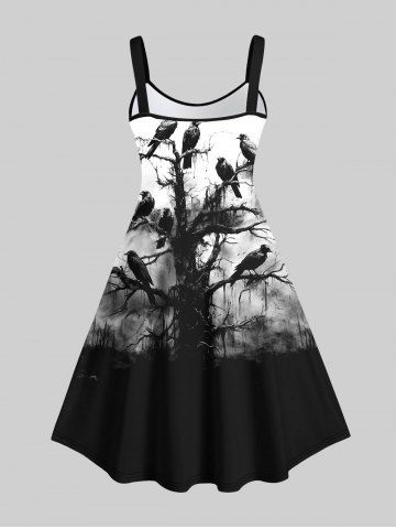 Halloween Dresses > Plus Size Ink Painting Birds Tree Buckle Belt 3D Print Tank Dress