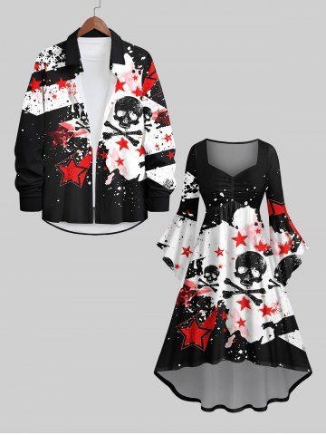 Halloween Dresses > Plus Size Ink Painting Splatter Skull Star Striped Print Halloween Costume Ruched High Low Asymmetric Dress