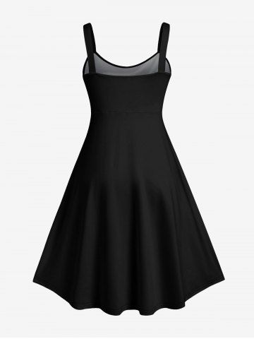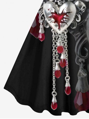 Plus Size Metallic Skull Cracked Heart Chain Tassel Print Halloween Costume A Line Tank Dress - Black - 6x