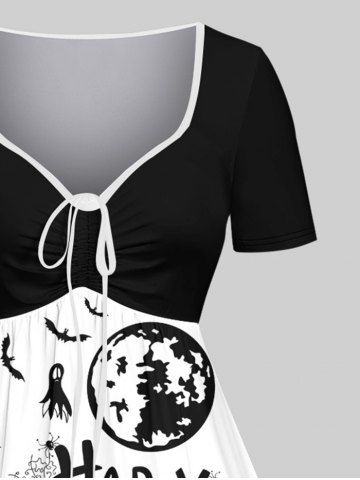 Plus Size Moon Bat Tree Castle Skull Pumpkin Letters Print Halloween Cinched Dress - Black - S