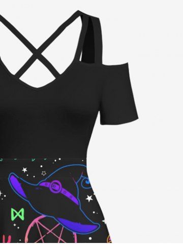 Plus Size Ombre Skull Bat Butterfly Moon Star Galaxy Planet Mushroom Print Halloween Costume Crisscross Maxi Dress - Black - 4x