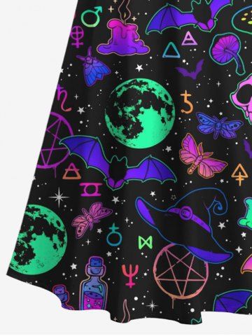Plus Size Ombre Skull Bat Butterfly Moon Star Galaxy Planet Mushroom Print Halloween Costume Crisscross Maxi Dress - Black - 6x
