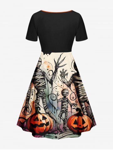 Halloween Dresses > Plus Size Pumpkin Bat Mummy Print Halloween Cinched A Line Dress