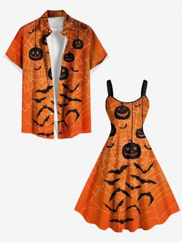 Plus Size Pumpkin Bat Spider Web Print Halloween A Line Tank Dress - Orange - 5x