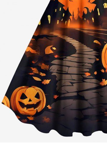 Plus Size Pumpkin Bat Tree Castle Print Halloween A Line Tank Dress - Orange - S
