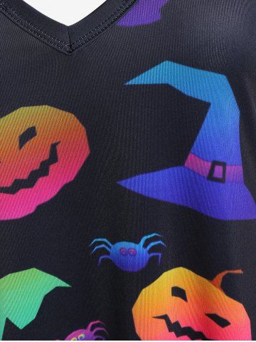 Halloween Dresses > Plus Size Pumpkin Bats Ghosts Printed Halloween Crisscross A Line Dress