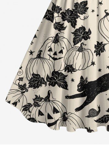 Halloween Dresses > Plus Size Pumpkin Cat Butterfly Leaf Bird Print Halloween 1950s Vintage Swing A Line Dress