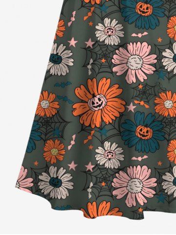 Halloween Dresses > Plus Size Pumpkin Daisy Flower Bat Star Spider Web Print Halloween Costume Crisscross A Line Maxi Dress
