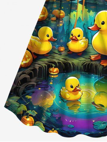 Halloween Dresses > Plus Size Pumpkin Duck Pond Print Halloween Cinched A Line Dress