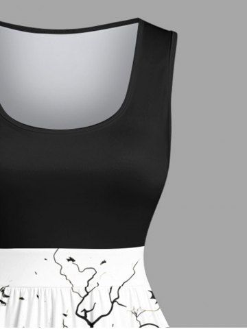 Plus Size Pumpkin Ghost Bride Bridegroom Crown Bat Tree Print Halloween 1950s Vintage Swing A Line Dress - Black - 2x