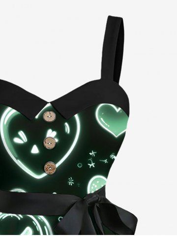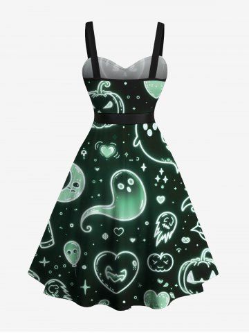 Plus Size Pumpkin Ghost Heart Moon Star Galaxy Print Halloween Ombre Button A Line Dress with Removable Belt - Black - Xs