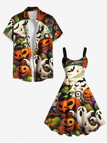 Halloween Dresses > Plus Size Pumpkin Ghost Monster Bat Moon Spider Web Print Halloween A Line Tank Dress