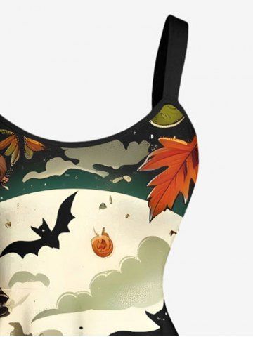 Plus Size Pumpkin Ghost Monster Bat Moon Spider Web Print Halloween A Line Tank Dress - Orange - Xs