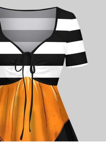 Halloween Dresses > Plus Size Pumpkin Ghost Tree Forest Striped Print Halloween Costume Cinched A Line Dress