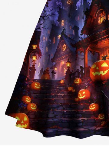 Halloween Dresses > Plus Size Pumpkin Lantern Bat Castle Print Halloween Lace Up A Line Tank Dress