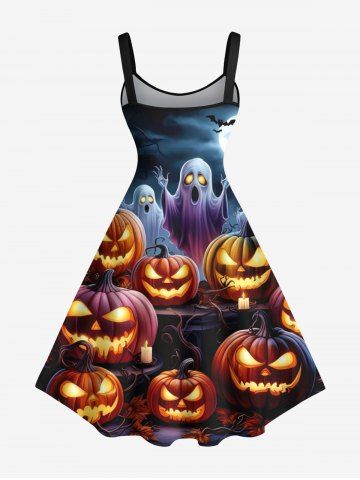 Halloween Dresses > Plus Size Pumpkin Lantern Ghost Bat Galaxy Print Halloween A Line Tank Dress